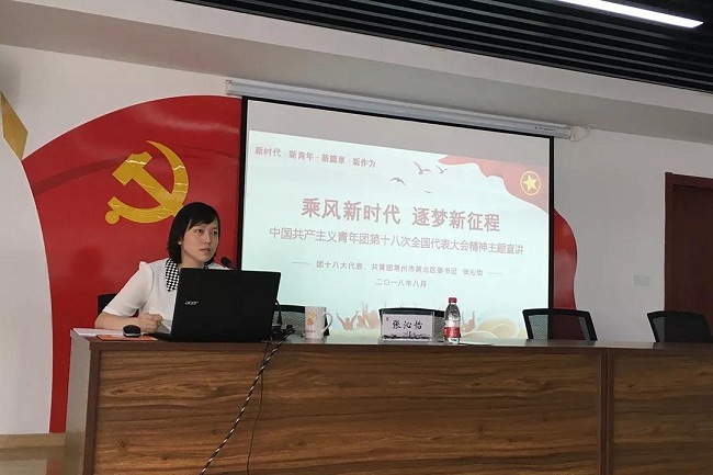 团的十八大代表、新北团区委书记张沁怡以“乘风新时代 逐梦新征程”为主题,用生动的实事、活泼的语言、真切的情感,深入浅出地为新北团员青年们传达了大会基本情况、党中央致词精神、团的十八大报告主要内容、团章修改情况、习近平总书记同新一届领导班子集体谈话精神等五方面内容。
