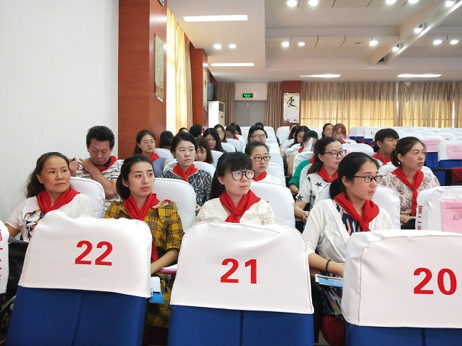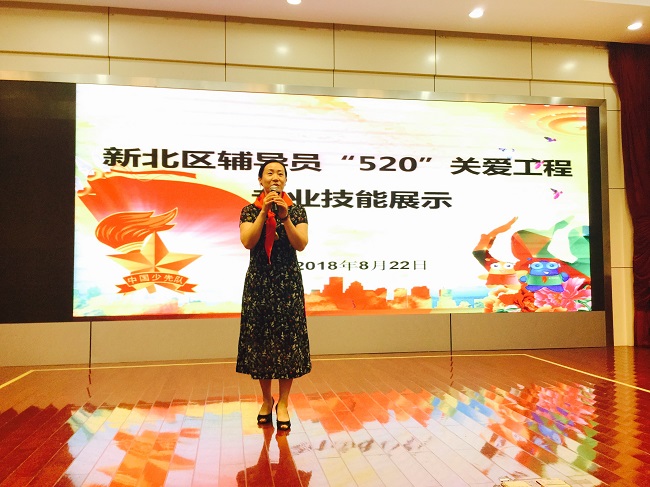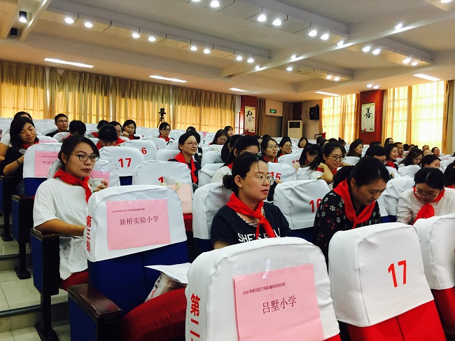 为深入贯彻习近平新时代中国特色社会主义思想和党的十九大精神,全面提升我区少先队辅导员的理论素养和工作技能,进一步推动全区少先队工作规范、有序、创新、飞跃发展,以“520”新北少先队辅导员关爱培养工程为统领,2018年8月21、22日,新北区少先队辅导员培训班在新北区春江中心小学举行,新北少先队名师工作室全体成员,以及全区各小学大队辅导员及部分骨干中队辅导员共142名辅导员参加了此次的培训班。活动还邀请到了团市委学少部张部长、市少先队总辅导员张莉作为嘉宾评委来观摩我们的专业技能风采展示。 本次活动培训方式新,培训内容实,以专题讲座、理论考核、实操演练、互动交流、片区比赛等形式学习,力求给予少先队辅导员更对专业的引领。