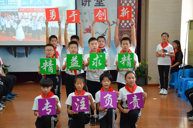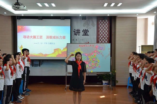 听队会:学工匠精神 汲成长力量 《寻访大国工匠 取成长力量》为主题的队会在辅导员陈素云老师地精心指导下展开。队员们根据暑期“红领巾寻访”活动分小队进行了收获与成长的分享交流:《邓伯伯与一根电话线的故事》讲述再现了岗位工作中的艰辛;诗朗诵《有这样一种人》讴歌了在岗位上默默耕耘,甘于奉献的劳动者;攻克行业难题“预缩率”的采访视频引发了队员们对“精益求精”的深度思考;荣获环球自然日比赛一等奖的《疯狂抗生素》现场表演掀起高潮,触动了队员们对“创新”的高认知……怀揣着梦想,汲取成长力量的队员们将自己的心声郑重地书写下来,粘贴到了祖国的版图上,成为了中国腾飞的希望!