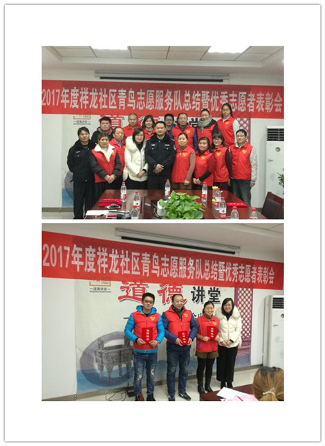 1月13日晚,祥龙社区青鸟志愿者服务队召开了2017年度总结暨优秀志愿者表彰会,祥龙社区主任参加会议。 2017年是青鸟志愿服务队成长的一年,也是收获的一年。志愿者们从各个小区为爱有缘聚在一起,组建巡逻队,为我们辖区的治安安全保驾护航;组建爱心慈善队,为我们社区病重家庭筹措医疗费;组建孝老爱亲队,为我们辖区的老人们送去关怀…… 为了表彰志愿者们的默默付出,志愿者们通过投票的方式选出了8名优秀志愿者,祥龙社区主任为大家颁发了荣誉证书。志愿者们表示,这是一份荣誉,是对大家付出的肯定,同时这也是我们新的起点。颁奖完毕后,大家聚在一起共同商讨了2018年的工作重点,大家信心满满,要把“奉献、友爱、互助、进步”的志愿者精神,继续发扬光大。