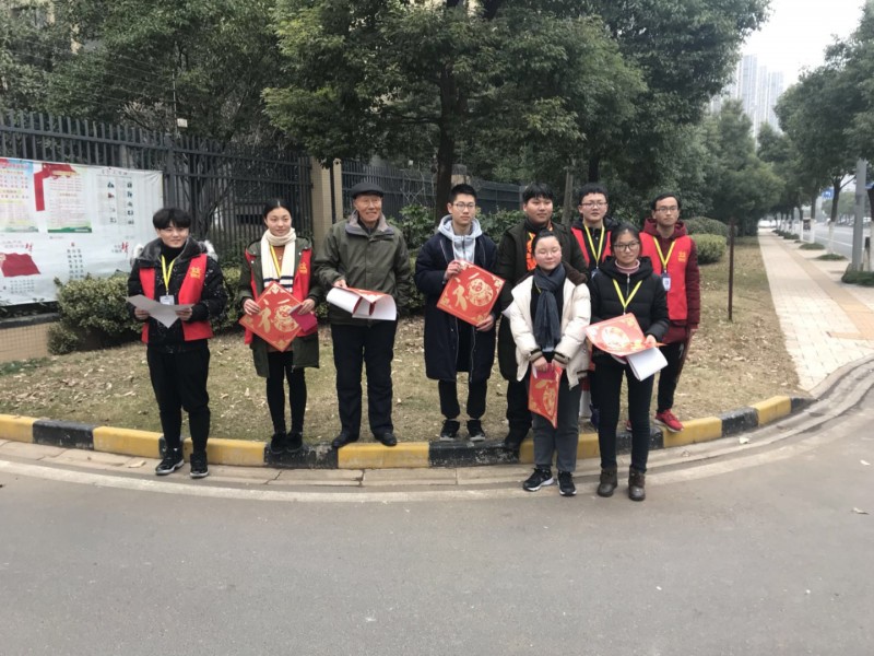 1月19日下午,望湖社区志愿者联合旅游商贸志愿队在小区门口开展“新年送福·情满望湖”活动,为小区居民送学生亲手做的福字,给居民送去温暖。