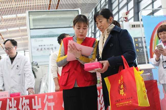 春节临近,全国各地的公共交通枢纽都处于春运高峰,南来北往的人将踏上期待已久的旅途。2月9日早上9点多,常州机场候机大厅内十几名红马甲忙碌开了,有在人流中宣讲政策发放健康工具包的志愿者;有专注为旅客测量血压并提供专业健康建议的医务人员;还有热情邀请旅客填写调查问卷的计生工作者;除了宣传义诊服务,志愿者们还力所能及为赶时间的旅客处理各种突发状况,换牌登机带路、抱娃娃搬行李、意外伤口包扎,修理旅行箱等,热情周到的服务受到现场候车的旅客纷纷点赞。 本次活动主要针对春节人口大流动特点,结合大众对健康的需求,以发放宣传资料和健康用品提供专业的义诊服务,来倡导流动人口将健康知识技能、政策、健康工具的使用方法等传递到家庭成员中,形成健康文明的家庭氛围。大力营造健康人人尽责、人人享有的社会舆论氛围。