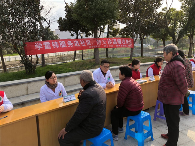 3月6日上午,道乡社区团支部联合新桥镇团委、常州市第四人民医院在道乡广场举行“学雷锋服务进社区,做义诊温暖在身边”爱心义诊活动。