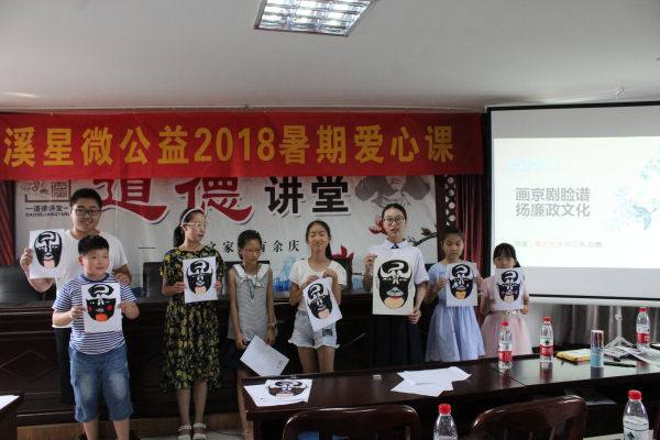 青少年是祖国的未来和民族的希望,他们是否具有公正廉明的观念乃至坚定的廉洁信念,将影响其以后的人生道路。7月24日下午,罗溪镇团委以中小学生暑期课堂为契机,给来自12个村(社区)的40多名中小学生开展了以廉政教育为主题的暑期活动。 通过给学生们讲述《包拯拒礼为开廉洁风》小故事,在细小的事情中,学生们感受着古代伟人的高尚品德与节操,深入了解了廉洁清正的重要性。“听了《包拯拒礼为开廉洁风的故事》,我才真正明白了什么叫大公无私,什么叫清正廉洁,以后长大了我一定要向包公爷爷学习,做一个正直的人。”一名学生说。 与此同时,志愿者还组织学生们绘画包公脸谱,活动中,一幅幅作品从学生手中诞生,诠释着孩子们对“廉政”二字的理解。寓教于乐的廉政文化宣讲活动给他们上了别开生面的一堂课,让他们对廉政概念有一个更深入的认识,为今后树立正确的人生观与价值观,形成坚定的廉政信念与廉政品格打下基础。