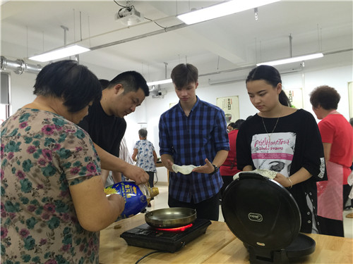 为弘扬中华优良传统文化,喜迎中秋国庆双节到来,橄榄城社区组织辖区志愿者、部分居民代表,联合常州工学院国际交流学院40余名留学生在社区居家养老服务中心开展了一场“浓情中秋,饼承情怀”——月亮饼制作DIY活动。 活动开始前,志愿者阿姨们将参加活动的留学生每十名分为1组,共分为5组,并带领留学生们将所需工具清洗干净,接着详细地讲解常州特有的月亮饼的制作步骤后,大家都迫不及待地动手开始制作月亮饼。揉面、包馅、用擀面杖擀成圆圆的月亮形状,再撒上黑芝麻,很快一个个可爱诱人的月亮饼就制作出来了,留学生们更是迫不及待的烘饼品尝自己的劳动成果,脸上都露出了喜悦的笑容。饼做完后,社区工作人员还把饼送到了孤寡老人手中。 通过这次活动,不仅促进了中外友好关系,还增强了居民之间的互动交流,让大家充分感受到了节日的气氛。留学生们都纷纷表示希望社区能继续开展此类活动。