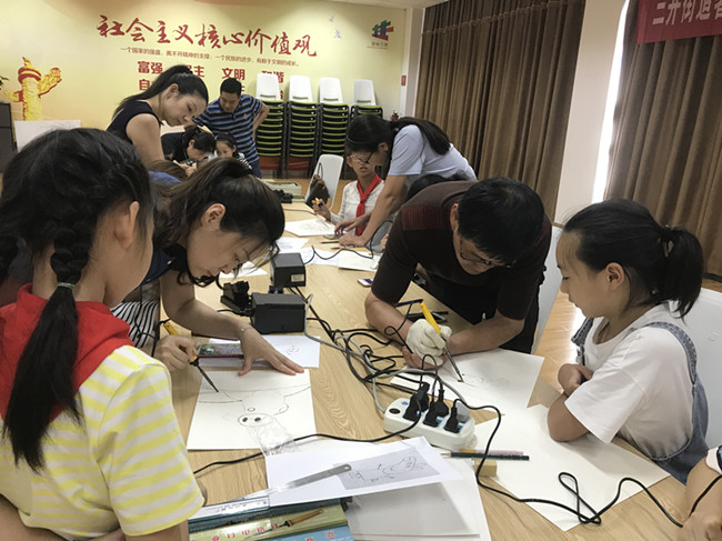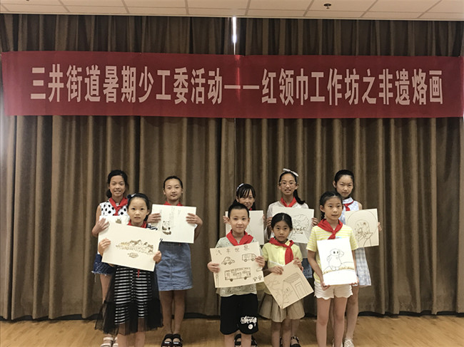 近日,三井街道暑期少工委活动—红领巾工作坊之非遗烙画活动在文体活动中心培训室举行。