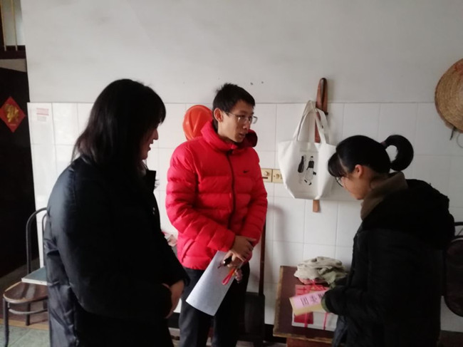 12月15日,新桥镇团委委员徐攀在朱家弄村团支部书记的陪同下,来到朱家弄村走访慰问贫困青少年谢同学,为她送去学习用品和慰问金。