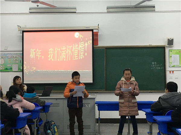 1月3日,外面大雪纷飞,六(4)中队的教室里却热闹非凡,温馨无比。赵璐老师为营造阳光、和谐、幸福的校园文化生活,以中队为单位,组织开展了“新年,我们满怀憧憬”主题班队活动。 师生们都做了充足的准备和精心的策划,活动内容丰富多彩、形式多样,有诗歌朗诵、古筝表演、舞蹈、现场绘画作品展、吉他表演以及互动诸多节目。队员们用自己喜爱的方式来挥别2017年,畅想2018年,表达了他们对新年的祝福与向往。为了让同学们对我国的传统文化进一步的了解,小主持人们还穿插三首古诗:《元日》、《甲午元旦》、《岁旦》。队员们个个热情高涨,欢乐的笑声此起彼伏,轻松、和谐的节日气氛洋溢在校园的每个角落。 通过此次活动,队员们认识到在新的一年应该以新的姿态、饱满的精神投入到学习与生活中去,相信他们一定能够更加健康快乐地成长。 (撰稿:杨继芬摄像:杨继芬审核:卢庆平)