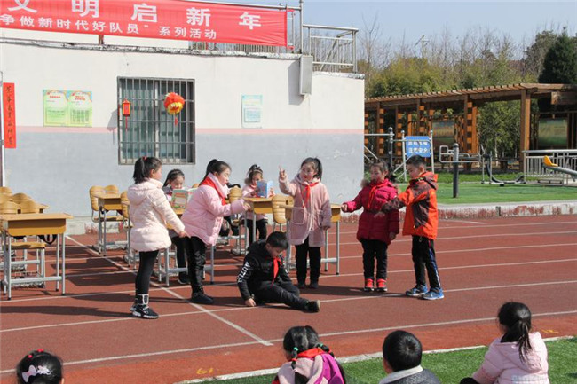 金鸡报捷梅花俏,义犬迎春柳色新。新春伊始,万象更新。2月26日,全体队员精神抖擞地走进美丽洁净的校园。寂静了二十多天的校园,又变得生机勃勃,充满朝气!下午,全体师生观看“我是新时代好队员”——新学期第一课暨2018家校联系本发放仪式活动视频后,便齐聚国旗下,举行“从‘礼’出发,争当新时代好队员”开学典礼。 第一篇章:新春祝福到 送福迎开学 新春到,祝福可少不了。瞧!书法社团的队员们端坐在舞台中央挥毫泼墨呢!他们在崭新的红纸上,大笔一挥,书写如行云流水,一个个大大的“福”字、一幅幅春联一气呵成。简短隆重的升旗仪式后,在欢乐喜庆的音乐声中,队员们手拿春联和“福”字一一亮相,他们大声地向全校师生送出了美好的祝福,“迎新年平安幸福”“庆佳节万事如意”,台下的队员们也早已按捺不住,齐声喊出“平安如意”……并将福纸赠送给各年级师生,接到福纸的队员兴高采烈,队员们开心地凑到一起,讨论并研摩这幅寓意新学期、新气象的“宝贝”。红红的春联,暖暖的阳光以及队员们灿烂的笑颜,为这个冬日增添了一抹最亮丽、最温馨的色彩。 第二篇章:从“礼”字做起 争当好队员 新学期,和乐娃美德积分卡再升级。焕然一新的积分卡上,十好(礼貌好、走路好、卫生好、吃饭好、心肠好、排队好、做操好、集会好、质量好、读书好)整齐排列,一“好”一月一专项,3月为“礼貌好”专项月。紧接着,自制的校园情景剧《文明之花开满园》粉墨登场啦!文明礼仪小天使们以一天的学校生活为线,还原了校园生活之中遇到老师礼貌打招呼、上课学习端坐课堂、路遇垃圾细心捡起等场景,把“礼”字内化于心,外化于行。队员们生动精彩的演绎赢得全场此起彼伏的掌声。新的一年,新的学期,争当新时代好队员,让我们从“礼”字做起,将文明之风吹遍圩小校园! 第三篇章:颁奖畅未来 扬帆再启航 最激动人心的颁奖环节到了!岁末,本校9位品学兼优的队员荣获“春之江教育基金”励志奖学金,曹校长为他们颁发了奖状。全校师生以雷鸣班的掌声,向获奖队员表示热烈祝贺!紧接着,曹校长作了热情洋溢的开学致词,鼓励队员们以好习惯成就美好的人生和未来,提出三点期待:一是期待队员们坚持打造礼仪校园;二是期待队员们坚持爱读书、爱惜书的好习惯,持续打造书香校园。三是期待队员们显个性,展风采,一如既往地积极主动参加活动,尽情享受校园文化盛宴。曹校长的谆谆教诲不仅饱含着校领导对全体队员的厚望,也代表了全体辅导员的殷殷期盼,更为大家指明了新学期的努力方向,让队员们倍受鼓舞。 新学期的号角已经吹响,新的起跑线在我们脚下延伸。全体圩小人已经做好迎接新挑战的准备,从活力犬身上寻找力量,奋进前行,争当新时代好队员,和乐共进再谱新篇! (撰写:王赛男 拍照:刘小峰、周敏 审核:曹立新)