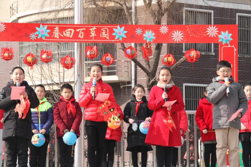 新年的鞭炮声还在耳畔回响,亲人、朋友的祝福还在耳边荡漾,当我们还沉浸在春节的欢乐中,春雨已敲起了战鼓,春风已吹响了号角。春的鼓点已汇成一曲雄浑的交响曲,激励着人们拼搏奋进!2月26日上午,在喜气洋洋的歌舞声中,百草园小学全体辅导员、少先队员举行了《春回百草园 幸福共成长》2017—2018学年第二学期开学典礼。 恰同学少年,风华正茂。伴随着充满激情的进行曲,百小学子迈着矫健的步伐进场了。新的学期,新的希望,新的梦想,理想在等待你,鲜花在召唤你。典礼在庄严的升旗仪式中拉开帷幕。开学典礼以短剧的形式展开,共分三个篇章:幸福读书吧、成语连连看、能量加油站。短剧全部由少先队大队委自己构思、自行创作,自导自演。舞蹈走秀、心愿朗诵、诗文吟唱、榜样对话和校长致辞等所有环节,巧妙融入其中,一气呵成。 短剧以学生筹备开学课程为线索,偷偷排练一场“快闪舞”作为惊喜送给自己的老师,然而在准备的过程中金点子不断的涌现出来,传统花灯送祝福,与孙杨大哥哥时空对话……轻松愉快的演绎方式,让在场的每一位观众记忆深刻。典礼中一个个花灯都是队员们的亲手DIY,这种庆典活动形式,发挥和培养了队员的自主性和创新意识。 张红梅校长回顾了学校2017年的快速高质发展,更感动于每个队员在活动中的自信、智慧和坚毅。展望已来的2018年,希望每位辅导员都能以爱为源,爱学生,爱家人,爱工作,爱生活,让生活因爱而幸福; 希望每位少先队员都能以智为根,会学习,能创造、善合作、懂感恩,让成长成为生命最美的姿态。 又是一年画卷开,似水春潮滚滚来。开学第一天,别样的开学典礼让队员的心里暖意涌动。在狗年这个吉祥如意的年份里,我们必将齐心协力,用奋斗去灌溉梦想,努力绽放出更加绚烂、更加美丽的花朵。