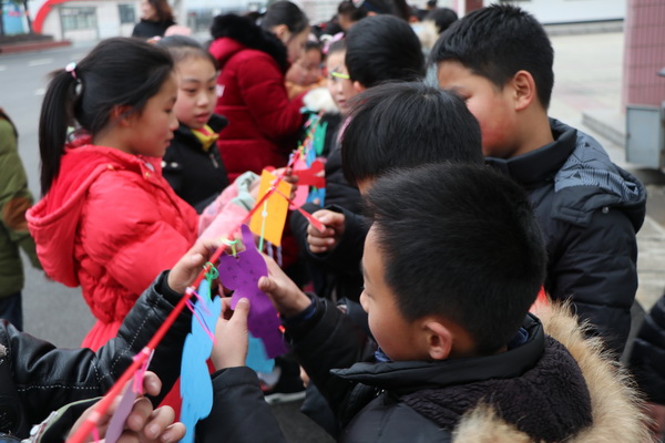 元宵节是我国的传统节日,为了让孩子们元宵节浓浓的节日气氛,感受庆祝元宵节的快乐,3月2日下午,汤庄桥小学组织孩子们开展了“品味中国节 欢乐闹元宵”的活动。 低年级开展了“创意做灯笼,欢乐闹元宵”主题活动。在中国人眼里,灯笼是喜庆的象征,预示着红红火火,团团圆圆。孩子们在班主任老师和家长的指导下,收集压岁红包,各种颜色的卡纸,通过剪、贴、画等方式,用自己灵巧的小手做出了各种美丽的灯笼。一盏盏独特、绚丽的元宵灯笼悬挂在教室前的长廊边,汇成了灯的海洋。孩子们驻足观看,相互欣赏,相互交流,有的还情不自禁伸手去摸一摸,“哇!真漂亮!”脸上洋溢起欢快的笑容。整个校园也充满了节日的气氛。 中年级开展“猜灯谜,庆元宵”的活动。只见校园内的连廊、主干道两旁以及教室门口的走廊悬挂着的八百余条谜语竞相争辉,与红红火火的小灯笼一起营造出一种祥和温暖、和谐雅致的氛围。三年级的班主任老师提前进行了谜语的收集和卡片的制作,充分的准备工作,让孩子们看到挂着的一条条新鲜有趣的谜语时,都大为兴奋,脸上洋溢着难以抑制的喜悦。四年级的孩子们动手能力强,他们经过自己的查阅搜索,在老师准备的卡片上亲自动手写下一条条谜面,有的还颇有创意地将卡片剪成各种好看有趣的形状,丰富多彩。当看到自己的谜语被挂在灯笼上供同伴竞猜时,那种成就感和满足感不言而喻。 五年级的孩子们在编织中感受快乐:巧手编织平安结手链,把这份平安的祝福送给辛劳又爱美丽的妈妈;亲手挂上各款灯笼,营造浓浓的元宵节的氛围。压轴大戏是亲手搓元宵,孩子们早早准备了各种各样的馅料:芝麻、豆沙、花生、猕猴桃……有模有样地开始了,或搓,或揉,或包……或大,或小……或成功,或失败,都融进了孩子们对元宵节的情感。