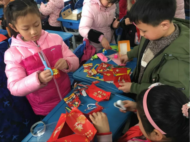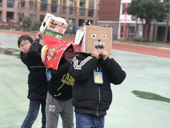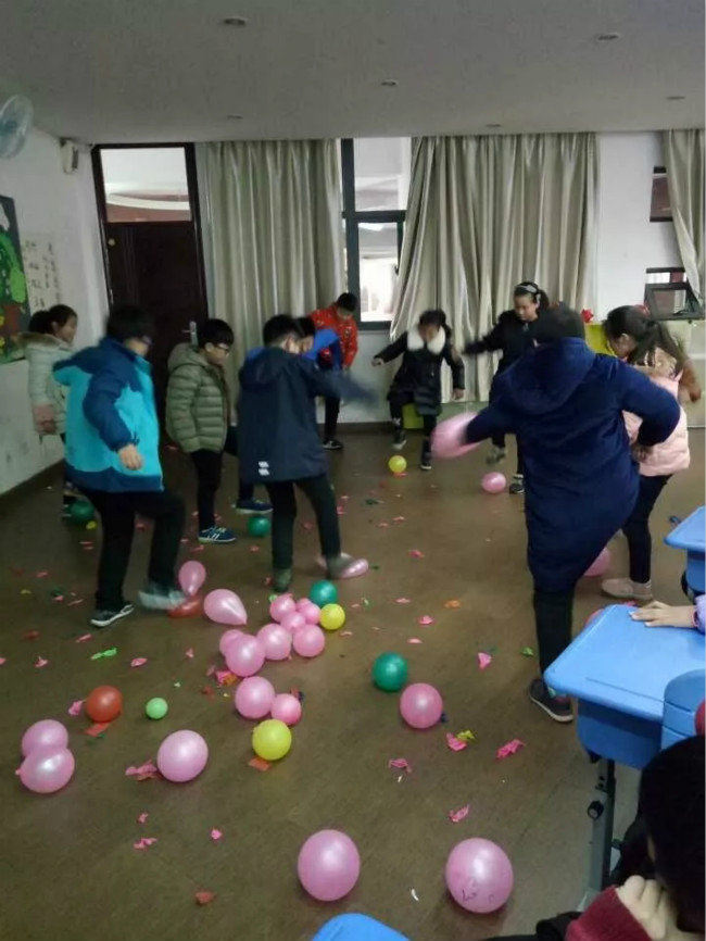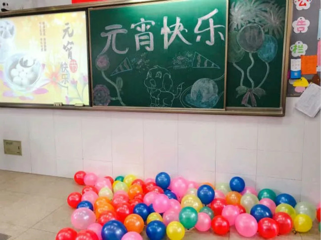 五年级各个班级前的走廊被花灯彩带装扮得焕然一新。教室内部也被学生用气球等各色装饰物布置得其乐融融。学生自主策划各类节目:英文歌曲演唱、魔术表演、舞蹈等尽显学生们的才干。围绕着闹元宵的主题,各个班级也举行了吹球入碗,夹乒乓球等小游戏,让学生们在游戏氛围中获得了快乐。而元宵节灯谜则被放入气球中,学生们边玩着踩气球的游戏边猜着灯谜。整个下午的元宵节活动激发了学生们的参与热情,丰富了学生的课余生活,锻炼了学生的才干,为学生的诗意童年又增添了一份靓丽的底色。