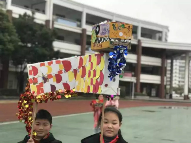 六年级全体同学手工打磨了一个不一样的元宵节,学生们沉浸在深厚的文化底蕴中,传递了民俗正能量。几天前,同学们便为元宵课程积极行动了起来,从创意创造,搜集材料,绘图制作到最后的组装展示,同学们倾注了很多的心思。同学们搜集了各种废旧材料,精心制作龙灯,呈现的作品真是精彩纷呈,有霸气十足的飞龙,有威武雄壮的狮子,有小巧精致的绣球……