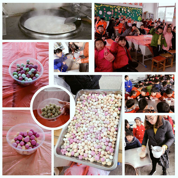 一年级活动现场一派热闹景象,家长志愿者们揉面的揉面,拌馅的拌馅。孩子们分成不同的小组,在家长志愿者们耐心地指导下,孩子们用不娴熟的手势搓出一个又一个可爱的汤圆。他们一边抱着汤圆一边唱起了欢快的元宵歌,在包汤圆的同时有的家长志愿者还向孩子们讲述了元宵节的来历和民间的各种习俗,让孩子们更深地体会到中国传统节日氛围和内涵。为让大家品尝到自己的劳动成果,大家将包好汤圆送到食堂,在食堂师傅的帮助下一个个可爱的圆球变成了可口的汤圆,孩子们馋得口水直流。大家排着整齐的队伍,在美丽的妈妈们的帮助下,孩子们都分到一碗碗热腾腾的汤圆。孩子们狼吞虎咽,共同品尝着自己的劳动成果。可能是自己做的汤圆更加可口,有些孩子一连吃了好几碗,欢乐的笑脸挂在每个人的脸上。