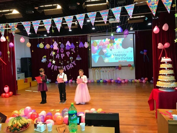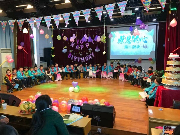 十岁,是人生成长中的第一个里程碑,它意味着孩子们即将告别幼稚的童年,开始迈入憧憬无边的少年时代。2018年3月12日,对于安小三6中队全体成员和家长们是一个特殊、难忘的日子。为了让队员们记住这个具有纪念意义的生日,学会感恩、懂得分享,理解父母的养育之恩、师长的教诲之恩,三6中队在安小阶梯教室举行了“十岁成长礼”主题活动。 上午,部分家长早早就来到阶梯教室,为下午的活动张罗开了,吹气球、挂彩带,把现场布置的美美的,一切工作都准备就绪。 下午13:30,梁煜桐、李潼、徐王慧三位主持人闪亮登场,“十岁成长仪式”正式开始。第一版块——成长的足迹:童年趣事,“猜猜我是谁”。一张张孩子们儿时的照片,承载了无数童年的快乐。在成长的道路上,家长们为孩子倾注了无尽的爱,蒙晓俊妈妈分享了孩子在成长道路上的感人故事。接下来是精彩的节目表演:队员方燕斌、王世杰、廖建烽和印昌明表演的《三句半》,给大家带来了不少笑声;女生们的舞蹈《彩云之南》婀娜多姿;队员孔承禹神奇的魔术表演让所有人惊讶不已;队员王禹函和妈妈合唱的《咖喱咖喱》,动感十足;徐王慧和刘若童两位队员的古筝合奏《茉莉花》,别有一番韵味;李潼、王继一等人带来的小品《今天、明天》很好的诠释了“少壮不努力,老大徒伤悲”这句话;邵可雯演唱的《天之大》,歌声优美动听;最后全体队员集体诗歌朗诵《我们十岁啦》,大家深情激昂,铿锵有力地宣示着生命的成长。第二版块——感恩的心。队员们现场读自己写的感恩卡,一句句感恩的话语,一句句爸爸、妈妈我爱你,让现场的家长们热泪盈眶。家长们对孩子深情告白和寄予的殷切期望,从言语中都流露出家长们对孩子深深的爱,浓浓的情,每一句真挚的话语都会引起大家的共鸣,每一句肺腑的话语都催人泪下,这温馨的画面感动着在场的每一个人。最后,全体点蜡烛,切蛋糕。辅导员张金凤老师给孩子们送上祝福语和对他们的期望。周校长总结了这次活动,和大家分享了就十岁以后教育孩子的经验。然后,辅导员张老师、王继一和王继一爸爸一起为孩子们点燃生日蜡烛,随着烛光一支支闪烁起来,生日歌旋律奏响,现场的气氛也达到了沸点。队员们纷纷闭上眼睛,十指相扣,默默许下美好的愿望,他们的脸上都露出了快乐和幸福的微笑。活动在一起分享美味的蛋糕中落下了帷幕。 “十岁成长仪礼”圆满地结束了,但队员们的心情久久不能平复,那一幕幕感人的场面将会铭刻在他们的脑海中,震撼着他们的灵魂,时时触动他们最柔软的神经。愿所有的队员学会心怀感恩,励志前行,踏实地走好今后的每一步! (撰稿:队员徐王慧妈妈 张金凤 摄影:张金凤 审核:印亚宏) 新北区安家中心小学 2018.3.14