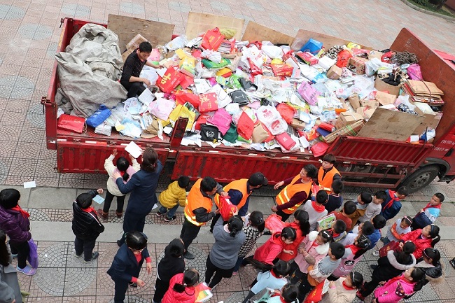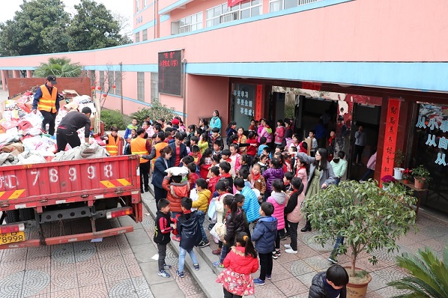 3月13日下午两点,新华实验小学开展了“集废纸•攒平安•播法治•树文明”环保公益活动。 绿色环保,是新华实验小学所有少先队员一直践行的理念。本次环保公益活动,各位少先队员当然也是投入了所有的热情。趁着周末,新华实验小学的各位小队员们,就早早地将家中废旧报纸、报刊、杂志等装进纸袋子或者用绳子打包系好,只等学校的一声召唤。 下午两点整,邮局的汽车如约驶进学校大门。各班少先队员排好整齐的队伍,有序地将早已准备好的5斤废纸递到邮局工作人员手中,换取了崭新的家校联系本。学校的各位辅导员也将以家校联系本为载体,充分发挥其“小手牵大手、大手带小手”的纽带引领作用,加强平安防范、节能环保、司法宣传等符合学生认知需求的宣传。 这是一次集公益、环保与普法交互交融的公益活动,既提升了学生的法律素质、自护能力和环保观念,也让平安法治教育融入新华实验小学的所有少先队员的心中。在党的十九大精神的感召下,在绿色教育的滋养下,各位队员定会尽心尽力,为种好常州“幸福树”而努力,将环保公益活动推向新高潮。(撰稿:戎荷芬 摄影:戎荷芬 审核:陈建锋)