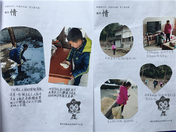 暖冬情——感恩体验: 1、社区小义工:确定一个义工日,以“雏鹰小队”形式在自己居住的社区、村庄,义务维护社区、村庄的道路、公用设施的卫生,清扫垃圾。2、爱心小邻里:做个小小志愿者,与小伙伴们一起给你所知道的贫困队员或所在社区、村庄低保家庭、孤巢老人送去一份关爱。3、当家小能手:为家人做一件力所能及的事,比如为加班的父母送一次饭,为父母制作一张新春贺卡,学习一项家务小本领等,争做懂事、有责任的家庭成员,践行“百善孝为先”的传统美德。