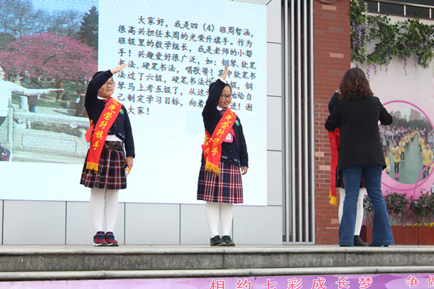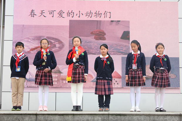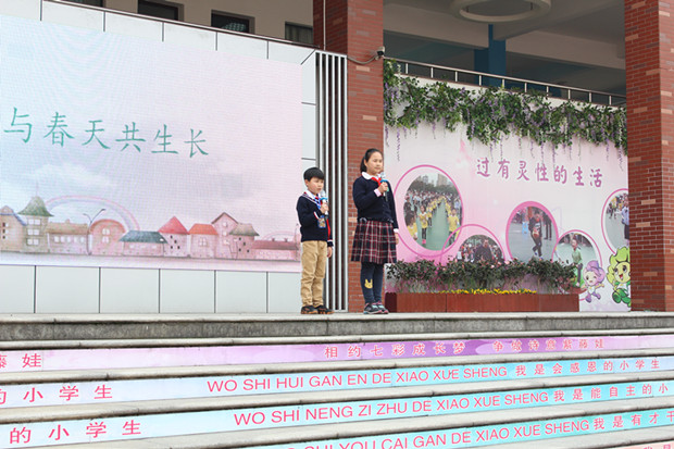 又是一年三月时,和煦的春风吹走了冬的寒冷,温暖的阳光铺洒出春的生机,复苏的万物孕育着绿色的希望。3月26日,新桥实小四(4)中队开展了以“与春天共生长”为主题的升旗仪式。春天是美好的季节,是充满诗情的季节。第一小队以动情的诗歌来赞美了春天,让同学们真切的感受到春天的到来给万物增添了生机,第二小队以幽默风趣的语言介绍了他们与春天里小动物共成长的故事,成功越狱的小白,眨巴着眼睛渴望看看外面世界的小仓鼠“咖啡,”总是喜欢在缸里爬来爬去的小巴西龟“慢拖拖”,所有的小动物在他们眼里俨然成了他们形影不离的好伙伴。最后第三小队为队员们呈现了自己的创意小绿植以及小绿植的制作方法。大家的创意还真不错,有的是妈妈用过的洗衣液瓶子改装的;有的是废旧的玻璃杯制成的;还有的是废弃竹子制作的……真是五花八门,各式各样!看来,同学们只要开动脑筋,生活就会变得靓丽多姿!最后新桥派出所的消防官兵还为大家带来了防火常识的讲解,不仅增强了同学们的安全意识,而且提高了大家应对灾害意外的能力。春天是播种的季节,她能给勤劳的人们带来收获的希望,大家在欣赏春天,赞美春天的同时,希望大家不要忘了努力地学习,以便在秋天收获更多的果实。