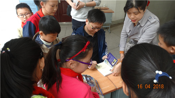 随着校园读书节的活动顺利拉开帷幕,4月16日上午,泰山小学迎来了一位特殊的客人,他就是著名作家:谢鑫。 谢鑫,生于20世纪70年代末。中国作家协会会员,中国科普作家协会会员,世界华人科普作协科幻分会会员。中国原创少年侦探小说领军人物。《快乐大侦探》、《超级小神探》特约编辑。中国未成年人网小记者名家点评团特聘专家。迄今已在全国百余家刊物发表作品900多万字,代表作有“课外侦探组”系列、“章鱼哥派出所”系列、“洛克王国魔法侦探”等。 上午9点半,同学们期盼已久的谢鑫叔叔来到了学校操场,开启了一场与全校同学的思维碰撞。 谢老师以兔子和老爷爷的故事作为开场,启迪同学们在生活中要用奇思妙想去解决问题。他结合生动有趣的故事,为同学们带来一场阅读与作文的盛宴。同时,他也阐述了四点给同学们阅读的建议。一、有一双善于观察的眼睛。二、有一个精于分析的头脑。三、有坚韧不拔的毅力。四、有一颗坚持正义的心。 讲座最后,谢老师给同学们进行了一个简单的作文指导。他提出的“442”法则令大家眼前一亮。如果把写作的时间分为10份,那么4份应该用来构思、写提纲、准备材料,4份用来进行具体的写作,最后2份用来修改作文。在修改的过程中,可以自己朗读,也可以请父母、老师、同学阅读文章,提出建议。 时光飞逝,讲座接近尾声,“写好文章对自己一生受益”这是些鑫叔叔给大家的赠言。他亲切地与每一位小读者签名、合影留念。阅读点亮人生,文学浸润少年。优秀的文学作品犹如甘泉,滋润着孩子美好纯真的心灵。一位位著名的儿童文学作家,用他们的智慧、真情给学生带来了阅读的享受。 作家进校园,让学生零距离地接触作家,丰富了孩子的精神世界,引领着孩子迈向文学的殿堂。愿泰小的阳光娃们在童年时期能更多地品尝经典读物,让优秀作品引领他们健康快乐地成长,为他们的一生奠基。