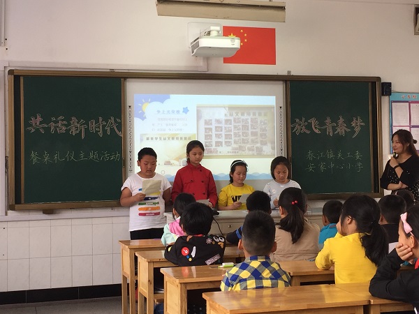 4月27日,春江镇关工委联合安家中心小学举行了主题为“共话新时代,放飞青春梦”的餐桌礼仪活动。 活动分两大板块,首先安家小学三(4)中队辅导员邵金花老师执教了用餐礼仪的班队课。辅导员老师从一双小小的筷子切入,围绕着“八礼四仪”中的用餐之礼展开,提炼了安家小学在队员用餐礼仪管理上取得的成绩,也指出了我们存在的不足。辅导员邵老师还特别聚焦安家小学少先队餐桌礼仪引导员队伍的工作,和“和美餐桌”的评选办法,勉励全体队员发扬中华民族勤俭节约的光荣传统,人人养成文明用餐的习惯。 最让人感动的是,在当天队员用餐的时候,春江镇关工委一行7位领导带上鲜红的绶带,和安小的餐桌礼仪小引导员一起开展工作,他们认真地看护少先队员用餐,慈祥地在用餐文明的队员额头贴上一个小苹果。作为对长辈的尊敬,小队员们还把餐后水果赠送给这些爷爷奶奶吃,一股尊老爱幼的浓浓爱意弥漫了安小的餐厅。 中华民族素有礼仪之邦的美誉,而作为“八礼四仪”之一的餐饮之礼是每个队员必须养成的最基本的礼仪习惯。为此,安家小学立足日常,花大力气培养全体队员文明有序的用餐习惯,我们不断调整思路改变方法,从单纯的辅导员管理,转变为辅导员、食堂工作人员、少先队大队部集体引导管理,从中主要突出队员的自我教育、自我管理。特别是少先队大队部实施的“安小餐桌礼仪引导员”举措,效果非常好,队员用餐整体表现有了质的飞跃。我们将以本次与镇关工委的联合活动为新的起点,在队员养成教育上不断创新,加大工作力度,让“八礼四仪”的文明之花在每一名队员心中盛开。 (撰稿:印亚宏 摄影:周剑飞 审核:周剑飞) 新北区安家中心小学 2018.5.1