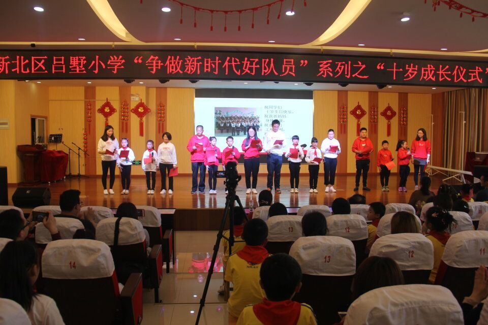 十岁——漫长人生中一个新的里程碑,它意味着孩子们即将告别幼稚的童年,开始迈入憧憬无边的少年时代。为了让孩子们记住这个值得纪念而且很有意义的生日,2018年4月27日下午,常州市新北区吕墅小学三年级全体队员在报告厅举行了一场别开生面的“感恩十年 幸福成长”集体成长礼活动。147名小寿星和他们的爸爸妈妈,以及学校领导和各位任课教师欢聚一堂,共同庆祝他们十岁的生日,共同分享这一份快乐。 活动在队员校园生活回顾的视频中拉开了帷幕。随后在给父母的一个拥抱,以及给父母的一封信中,让在座的家长感动不已。紧接着是队员们载歌载舞的表演,他们用自己的方式,以多姿多彩的才艺展示来庆祝自己的生日。当家长们还沉浸在孩子的表演中时,小主持人已经带领三年级全体队员一起朗诵《今天,我十岁了》,并宣誓。“信心对自己,诚心对他人,孝心对父母,热心对社会,衷心对国家。做一个“志存高远,文武双全,身心两健”的吕小好少年。”会场中环绕着队员们嘹亮的宣誓词,将活动推向了高潮。我们的陈校长也进行致辞,表达了对队员的期望和家长的感谢。伴随陈校的致辞,生日蛋糕已推上了舞台,队员们在生日歌中许下美好的心愿,并将自己的心愿卡放入心愿箱,走过成长门,一起期待明天更美好! 十岁成长礼庄严、温馨而感人,深深地印刻在了队员们的脑海中。我们有理由相信,经过十岁盛典的洗礼,我们的队员一定会对自己的未来更有信心,对自己的人生充满希望!