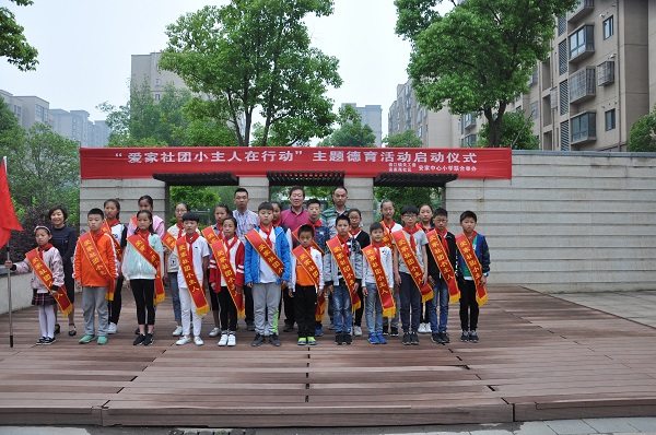 5月12日,春江镇关工委、安家苑社区、安家中心小学联合开展了“爱家社团小主人在行动”主题德育活动。作为落实安家小学德育年会的具体工作要求,本次活动旨在建立以学校为主导,家庭为基础,社区为依托,三位一体、齐抓共管的社区德育机制,探索实现学校教育社会化的有效形式与最佳方法,增强少先队员的志愿者意识、社区小主人意识,培养队员服务社区、服务社会的能力。 上午9点,活动在安家苑社区广场正式开始。首先,安家小学周明华校长发表了满含深情的讲话,周校长阐述了这项活动的重要意义,并勉励全体爱家社团的小主人们从自我做起,服务社区,从小培养爱家、爱国的情怀。接着,春江镇关工委、安家苑社区的领导为爱家社团小主人们授牌,安家小学德育处苏亚刚主任带领全体小主人举行庄严的宣誓仪式。鲜红的绶带,既是一份荣誉,更是满满的责任。洪亮的宣誓是服务社区家园的集结号,是实现自我价值的奋进鼓。少先队员季雨晴作为爱家社团小主人代表作了感想发言,表达了全体小主人从我做起、服务社区的坚定的信心和顽强的决心。最后何晓燕副校长宣读了小主人岗位考评条例,进一步明确了本次系列活动的规范要求,激发了全体小主人的活动热情。活动在安家苑乡亲们的掌声中圆满结束。 本次“爱家社团小主人在行动”主题德育活动启动仪式只是一个开端,后期的各项活动将逐渐拉开帷幕,并不断拓展和深入。我们坚信,在丰富多彩的活动中,爱家社团的小主人们一定会不断增强服务意识与能力,不断增强社会责任感,为共同建设美好幸福的安家苑社区贡献自己的一份力量。同时,一定会有更多的队员、社区居民不断加入进来,爱家社团队伍一定会不断发展、壮大。为了建设更加和美幸福的安家苑社区,大家撸起袖子加油干! (撰稿:印亚宏 摄影:高勤 审核:周剑飞)