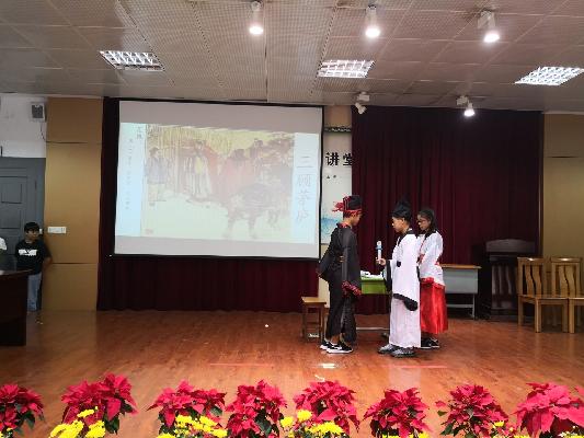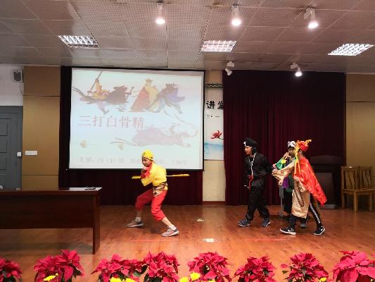 “让阅读像呼吸一样自然”“语文教师不能输给了阅读” ……阅读能力的培养是小学语文素质教育重要的组成部分。为培养孩子的阅读兴趣,提高孩子的阅读能力,继1-3年级“争做快乐的小书虫”的读书交流分享评比活动后,新华实验小学4-5年级的读书活动于5月31日在阶梯教室火热开展。 各班纷纷表演了课本剧及朗诵,在老师们的精心“雕琢”及同学们对剧本的深刻理解下,活动精彩纷呈。四(1)班同学在课本剧《三打白骨精》中的表现十分抢眼,他们把悟空的嫉恶如仇,八戒的好吃懒做,沙僧任劳任怨,唐僧的是非不辩和妖精的诡计多端刻画得入木三分,台下掌声不断。四(2)班的小演员们个个都是“小戏骨”,他们在课本剧《妙乎回春》中的表演很是生动,收获了评委老师和观众们的阵阵掌声。四(3)班和五(1)班同学分别带来了课本剧《空城计》和《三顾茅庐》,他们将剧本中的形象、情节演绎得淋漓尽致,把我们带入风云变色的三国时代。五(2)和五(3)班同学带来的朗诵表演同样振奋人心,抒发了小小少年的非凡梦想与爱国情怀。 阅名著经典,品翰墨书香。经典阅读是对语文课堂教学的有益补充,读书分享活动,使学生真正认识到书是人类智慧的结晶,读书是一件快乐终身的事情,个个表示争做一个有情趣、有修养的读书人。