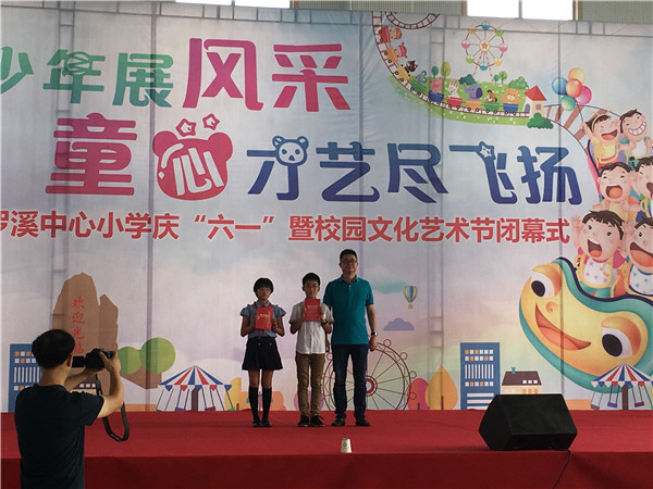 六月是歌的海洋,六月是花的沃土,六月是孩子们的季节。在祝福声中,我们又迎来了“六一”国际儿童节。新北区罗溪中心小学的校园里,充满了欢声笑语! 学校举行了庆“六一”文艺汇演暨校园文化艺术节闭幕式。殷国伟校长为本次庆祝活动发表了热情洋溢的致辞,优秀家长代表侯红芬女士作了发言,向孩子们送去了节日的祝福;副校长徐建峰、综合发展处主任、大队辅导员分别宣读了“优秀家长”、“ 优秀辅导员”、 “艺术节活动”和“童绘新罗溪”的表彰决定,并为获奖人员颁发了荣誉证书。接着一年级小朋友生动形象、可爱无敌的舞蹈《Da Da Da》拉开了文艺汇演的序幕,灵溪娃们用舞蹈、相声、诗朗诵、时装秀等形式展示了少年儿童健康活泼、积极向上的精神风貌。同时结合我校“我要上六一灵溪达人秀”活动,有13名“灵溪小达人”向大家展现了一场绚丽的组合才艺表演,有二胡演奏、男女合唱、古筝演奏、歌舞表演以及现场国画展示。这些精彩节目,从构思到最终节目成形以及演出服装、化妆等细节,无处不渗透着学校全体老师的智慧和汗水,最终呈现出一场精彩的文艺汇演。 在班主任老师的精心准备下,下午孩子们带着“六一游园卡”走进不同班级挑战不同游戏,获胜或过关队员可获得班主任老师的一枚印章,队员们的欢喜之情溢于言表。每一个班主任都是慈爱的妈妈,为了让大家度过一个有意义、能回味的“六一”儿童节,游园结束后与队员们在教室里举行大联欢,开展小游戏……无论走在校园哪里,我们都能感受到节日的欢乐,温馨的气息! 六一的歌声这样的动听,六一的舞蹈这样的优美,六一的活动这样的精彩。队员们在自己的节日里,留下最难忘的回忆!生活在罗小这个大家庭里,灵溪娃们是出巢的小鹰,明天将振翅高飞,搏击长空;灵溪娃们是含苞的小花,明天将姹紫嫣红,分外妖娆! (撰稿:杨继芬 摄影:卢建刚 审核:卢庆平)