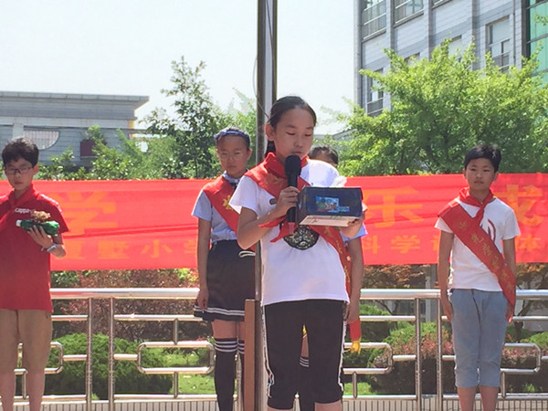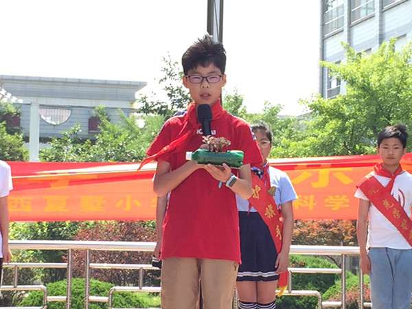 6月11日,火热的夏日氛围已然萦绕在校园的上空,在这个火热的日子里,西夏墅小学的2018年青少年科学调查体验活动启动仪式在升旗仪式上举行。 首先由去年参加此项活动,并在活动中获得全国优秀活动作品奖的队员代表包涵同学畅谈了自己参加活动的感受和心得。特别是当他在活动中不断地认识到绿色生活的意义之后,自己的生活方式也得到了巨大的变化。他学会了如何让自己的学习、活动、生活变得更有“绿色”,同时当他把这种理念渗透到自己的创意方案——绿色校园设计中时,就有了极富创造性地绿色校园的设计设想,同时这份方案得到了专家老师的肯定,获得了全国大奖。 接着,五(6)中队的几名队员,展示了自己利用废旧物品制作的作品,有的是可乐瓶做成的花瓶;有的是用纸盒做成的拖线板分路器;有的是就牛仔裤做成的书报袋……这些作品虽然比较简单,但是却凝聚了这些队员的创造性的思维,和他们的一种理念,这就是青少年科学调查体验活动倡导的“创新、环保”的理念。 活动最后,学生处杨老师向全体队员宣读了本次活动方案,简单介绍了活动的项目内容,并鼓励全体队员能积极参与本次活动,动脑动手,智慧参与活动,用心去探索身边的科学,积极倡导绿色节约的生活方式。 期待着通过本年度青少年科学调查体验活动,能进一步激发我校队员热爱科学探究的热情,更好地参与科学调查体验活动中,更好地以科学的方式来学习、生活。 (撰稿:杨伟 摄影:曾霆 审核:王瑛)