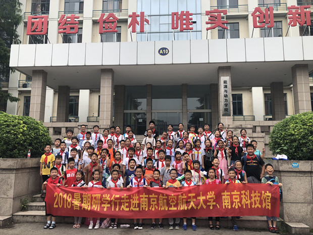 阳光七月,烈日炎炎,愉快的暑假开始之初,为丰富队员们的暑期生活,激发学生探索科学的欲望,孟河中心小学在2018年7月8日开展了南京科技研学活动,带领学校70多名队员一起走进南京航空航天大学和南京科技馆,感受科技的魅力。 上午,在南航导游姐姐的带领下,队员们参观了南京航空航天大学。热情的南航学生为孩子们介绍了几种无人机和飞行器,讲解了他们的飞行原理和组成部分,孩子们还亲手感受了各种飞行器的起飞,孟河中心小学航模队的同学还和大哥哥们热烈讨论起了航模飞机,收获满满。同学们参观了几种战斗机,了解了实战飞机的发展历史。最后,导游姐姐还给每一位同学送了一个航模飞机,较同学们组装呢! 下午,队员们来到了南京科技馆,在那里,他们体验了模拟地震和余震逃脱,看到了光影的万般变化,最吸引队员们的要数各式各样的机器人了,有的会售货,有的会跳舞,有的还可以和你对话。在科技馆里,队员们们正真感受到科技改变生活。 一天的研学活动虽然辛苦,但是丝毫不影响队员们的热情,他们不禁感叹科技的发展改变了我们的生活方式,也强大了祖国。他们把此次研学的收获画成画,写成文章,记下这难忘的时刻。 2018暑期国防教育研学行第一站,让航天梦,强国梦在孩子们的心中生根、发芽。