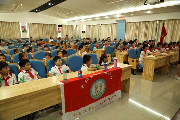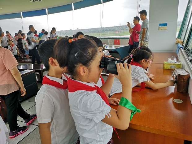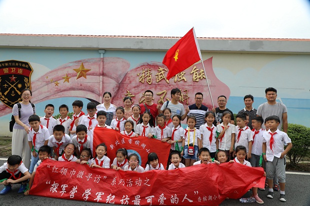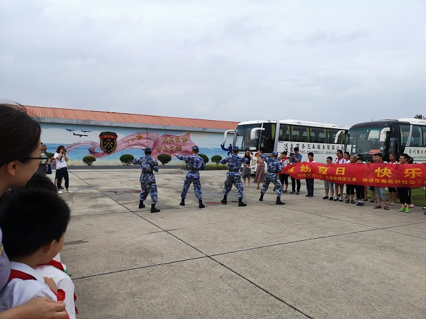 8月3日上午,台风云雀凶猛来袭,却不能阻挡香槟湖小学小蚂蚁中队寻访军营的脚步。大家都说军人是最可爱的人,他们的品质是那么高尚、纯洁,他们的意志是那么坚韧、刚强,他们的胸怀是那么美丽、宽广,队员们早已迫不及待想去一睹军人的风采啦! 坐上大巴,队员们一路欢歌笑语,不知不觉中抵达目的地——常州市人民解放军某部队。此时部队大门紧闭,门口还有解放军叔叔站岗放哨,队员们顿时感受到了部队庄严肃穆的氛围。走进大门,只见鲜艳夺目的军旗迎风招展,仿佛在欢迎队员们的到来呢! 负责接待的解放军叔叔热情地把大家领到文化活动中心,用热烈的掌声欢迎红领巾的到来。同学们安静地观看部队宣传片,了解了这支部队的发展历史后,个个肃然起敬。 接下来,队员们去参观军营啦!到了军营,只见四个小战士整齐地排列在门口。原来,他们是要给大家表演军体拳呢!解放军叔叔左一拳,右一腿,打得刚劲有力,虎虎生风,赢得了阵阵喝彩。队员们羡慕极了,真想跟叔叔们学上一招半式啊!紧接着,队员们去参观了军人叔叔的宿舍。宿舍内既简洁又整齐,每间宿舍都有上下六床铺床,每张床上的被子被叠得四四方方,枕头、鞋子、水杯、毛巾、脸盆摆放得井然有序,队员们情不自禁地啧啧称赞,打心底儿里佩服军人叔叔严谨的生活作风和工作态度。 最后,队员们来到塔台,观看客机起飞。解放军叔叔告诉大家,这里是飞机起飞的指挥台,一架架降落的飞机要得到指令才能起飞。队员们坐在指挥台前,看着面前这些仪器设备,既紧张又兴奋,既好奇又畏惧,真想快点长大,成为一名能指挥飞机上天入地的工程师。 半天的寻访活动,在参观军营,学习军纪,探寻最可爱的人中愉快结束了。小蚂蚁们深深明白了“少年强,则国强”的道理,暗暗下决心学好知识,为报效祖国,实现中华民族伟大复兴的“中国梦”贡献力量。