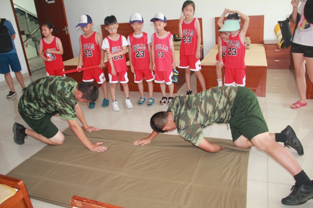 八一前夕,常州市新北区香槟湖小学一(5)班蒲公英中队8人小分队带着饮料,矿泉水等夏令品来到了位于常州市新北区春江镇录安洲港口的常州边防检查站。孩子们首先为武警叔叔们送上八一的节日慰问和祝福,此次活动孩子们是带着任务来的,香槟湖小学的特色暑假作业,红领巾微寻访活动开展得如火如荼,各个中队、小队活动都很有特色,此次活动是结合玲珑社区“八一”双拥系列活动进军营开展的。常州边防检查站常年担负着对常州港外籍船只的检查,在长江汛期还需承担防汛抗洪任务,负责保卫驻地的一方平安,除了平时的军事训练外,武警官兵还大力开展农副业生产工作,切实提高后勤综合保障能力。 孩子们都是第一次走进军营,对军营和武警叔叔们的生活充满了好奇,一走进武警叔叔的宿舍,孩子们就被一块块整整齐齐的正方形被子给吸引了,两位武警叔叔为孩子们演示了如何把被子叠成标准的正方形;孩子们跟着武警叔叔陆续参观了军营的盥洗室,健身房,还有军事训练基地,每个孩子都在武警叔叔的引导下尝试了过单边桥,孩子们个个都很勇敢,最后参观了武警叔叔和他们的蔬菜基地,孩子们了解到武警叔叔除了平时电视里看到的要训练,打枪,原来还要种菜种地才能保障后勤,在阶梯教室观看的常州边检微电影,更是深深地吸引着孩子们的目光,男生纷纷表示长大也要做一个军人,可以保家卫国。 此次活动,让平时娇生惯养的娃娃们懂得了军人吃苦耐劳的精神,懂得了团结奋进的精神,让孩子们从小就牢固树立保家卫国的意识,是一次很好很深刻的国防教育。