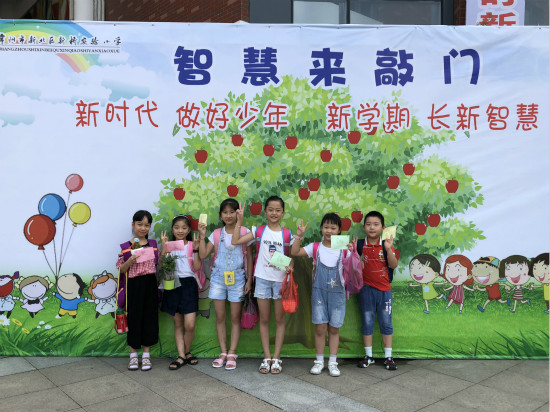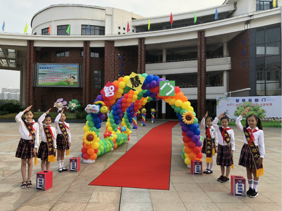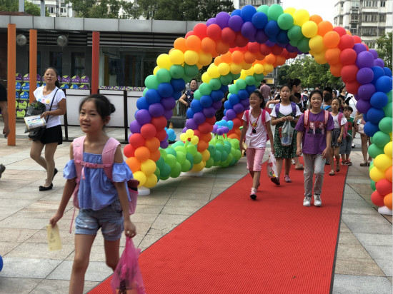 又临九月,秋高气爽,新小轻风飘荡。寂静了两个月的校园又将回归平日的活力。带着期盼,带着希望,同学们早早就来到校门前等候,不住地往校园内张望。 智慧之门走一走,新学期长新智慧 “哇,是气球吗?”“好多呀!”“五颜六色的真漂亮。”“还有红毯呢,我要走一走”…… 智慧拱门载着老师对孩子们真挚的祝福,新学期整装待发,智慧启航。长长的红毯上、漂亮的拱门下走一走,沾上崭新的气息。家长孩子们手挽手走进校园,一张张天真的笑脸,一双双纯洁的眼睛,一阵阵欢快的交谈,构成学校靓丽的一道风景线。