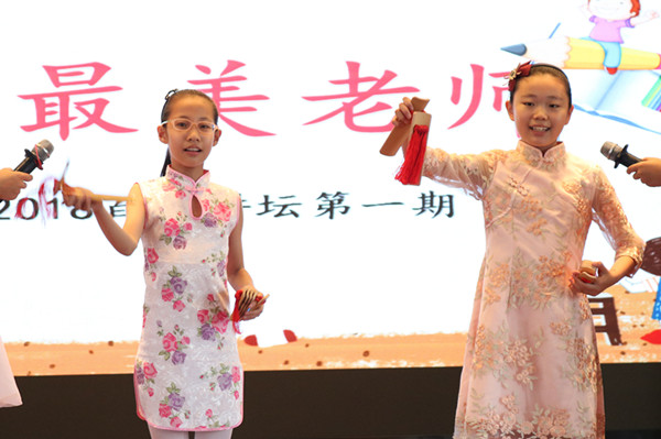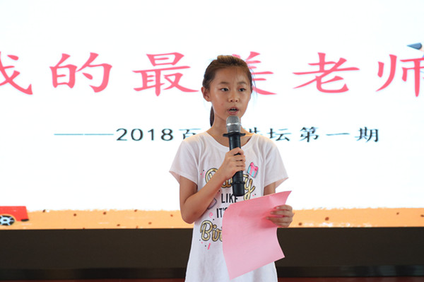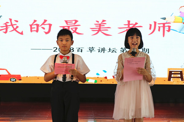 为充分展示我校德育特色和少先队员综合素养,学校大队部组织开展“百草讲坛”活动,是为少先队员搭建“展现自我,挑战自我,超越自我”的舞台,更丰富少先队员校园生活。9月19日,以“我的最美老师”为主题的百草讲坛第一期活动在四楼报告厅拉开了序幕。 参加本次活动的十组优秀少先队员都是经过班级讲坛的海选,再经年级讲坛角逐产生的,舞台上少先队员们一个个神采奕奕,他们用一个个鲜活动人的事例,一句句感人肺腑的挚言,让所有在座辅导员和少先队员的心灵为之感触良久。通过他们的讲述我们仿佛看到了一位位美丽而坚定的身影,在百草园的三尺讲台上展现了平凡而感人的一个个瞬间。最让大家耳目一新的是五(1)孙熙婷和于卓彤两位少先队员带来的快板,幽默风趣的语言,声情并茂的演绎,吸引了观众的眼球。经过大众评审投票,于卓彤&孙熙婷、葛天昊&潘佑嘉、孙浩然、谢景源四组少先队员获得了“超级演说家”的称号,袁鑫悦、刘子杰等6组少先队员则获得了“优秀演说家”的称号。 总有一种感动,温暖校园;总有一种力量,震撼心灵。此次活动寓德育教育于活动中,架起了一座师生沟通的桥梁,加深了少先队员对于辅导员的感激之情,也激励着每位辅导员履行人民辅导员崇高使命!