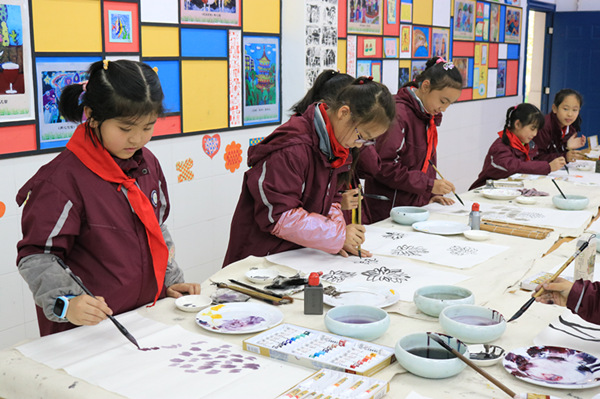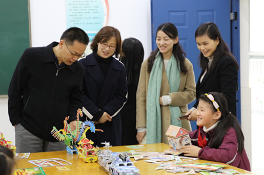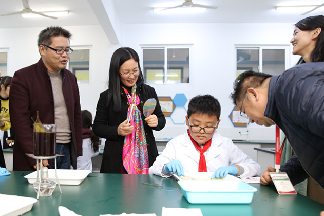 11月29日下午,正是橙黄橘绿深秋时,“新优质”评估组专家饶有兴致地走进了百草园小学社团活动。 社团活动是学校育人的重要载体,基于对少先队员全面发展的长远考虑,学校立足实际,根据孩子的兴趣爱好、特长等为少先队员精心打造了近四十个社团,既体现了“百草园”课程的丰富形态,又为校园文化注入了新的活力,为培养“博、毅、善”百草娃助力。 “成语小时光”的社团成员相约在“成语馆”里表演成语课本剧《滥竽充数》;成语教室里传来了“蒙学吟诵”社团的成语儿歌诵。“经典诵读”社团,身着汉服的孩子们正边诵边唱《三字经》,感悟国学经典的魅力;“快乐小木匠”社团里孩子们专心致志设计着弓弩、房屋。“I创实验室”里小科学家们正在制作叶脉书签;“珠心算”社团小朋友们展示神算子风采;“百味厨房”里飘来阵阵糕点的香味;“击剑”小团员们个个英姿飒爽;“快乐写生”“比特智造”“3D神笔”“E梦智造”“童心飞扬”……40多个学校社团的精彩展示,让专家们久久驻足,啧啧赞叹。 为了让每一个生命都幸福绽放,学校最大限度地优化资源,以课程的视角不断丰富内涵,凸显社团特色,实现一团一品,丰富多彩的社团活动,满足了少先队员个性发展的需求,呈现出百花齐放的校园新生活。