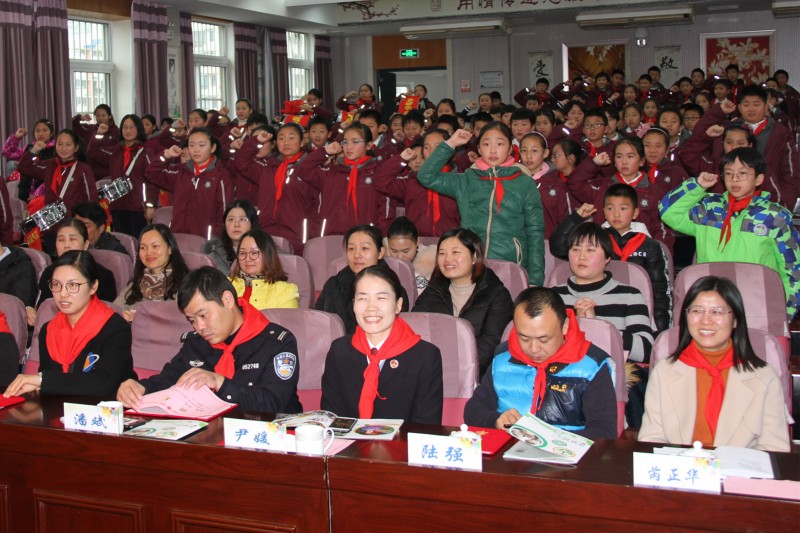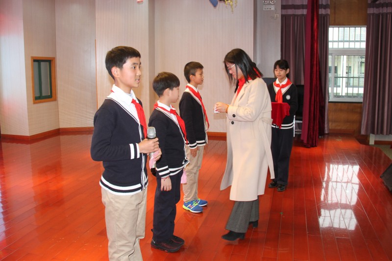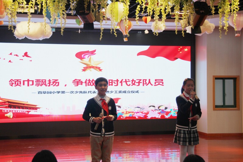 鲜红的领巾,映照着孩子们幸福的脸庞;昂扬的鼓号,激荡着少先队员们纯洁的心房。2018年12月7日,在嘹亮的《中国少年先锋队队歌》歌声中,在慷慨激昂的朗诵《中国话》中,“领巾飘扬,争做新时代好队员”百草园小学第一次少先队代表大会暨少工委成立仪式在四楼报告厅拉开了序幕。 出席此次大会的有芮正华副校长、教导处副主任蒋凯老师、少先队辅导员陈楚阳老师、中队辅导员代表以及优秀少先队员代表。同时,新北检察院的尹媛检察官、三井派出所的潘斌警官、校外心理辅导员蔡虹老师、以及家委会的代表们也来到了大会现场,和少先队员们一起见证、分享幸福时刻,大队委们纷纷为他们敬献上了神圣的红领巾。 首先,芮校长为大会进行了致辞,表达了自己的感谢,感谢少先队员能发挥主人翁的精神,积极为学校献计献策。与此同时,上届少先队大队部的副大队长丁佐昕对本学年的大队部工作情况进行了总结汇报。 为了迎接本次少代会,大队部还发起了“红领巾小心愿小提案”的征集活动,共收到25个中队近50份提案,这些提案涉及到队员们的学习生活、校园活动、校园秩序等方方面面的问题,蒋凯主任对这些小提案进行了详实的回复。 随后,芮校长还为新一届大队长和增补大队委进行了授标。小小的一枚标志,承载着一份沉甸甸的责任,时刻提醒队员不负众望、牢记嘱托。新当选的大队长潘佑嘉还发表了就职感言,他表示将会用更积极的姿态去完成各项工作,用“热心”和“真诚”为同学服务,用“信心”和“创新”开展活动。 少年强则国强,少年进步则国进步。少年儿童健康成长,是国家和民族的共同心愿。本次少代会上,百草园小学第一届学校少先队工作委员会宣告成立。校少工委由张红梅书记任少工委主任,芮正华和鞠晓雅两位副校长任副主任,少工委委员由德育主任、大队辅导员、优秀中队辅导员、优秀家长代表等组成。学校少工委的成立使少先队工作再上一个新台阶,更好地为广大少先队员服务,使学校少先队组织真正成为少先队员展示自我,快乐成长的大舞台。 最后,队员们高举右拳在陈老师的带领进行了庄严的呼号,每一次呼号都增加了队员的荣誉感和归属感。伴随着雄壮的退旗曲,百草园小学第一次少代会暨少工委成立仪式落下了帷幕。相信美丽的百草娃们定会牢记使命,高举星星火炬,继续谱写百草园少先队事业发展的新篇章!