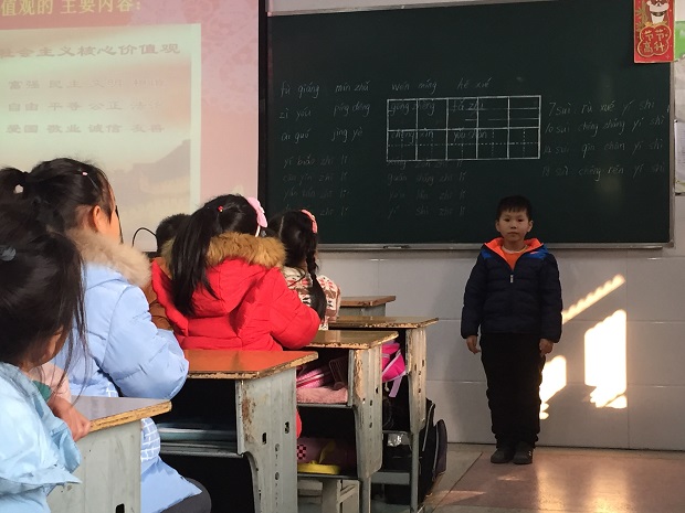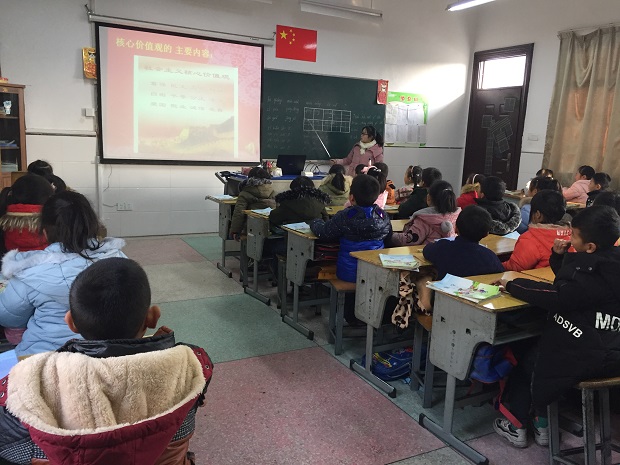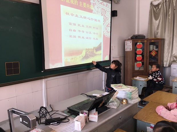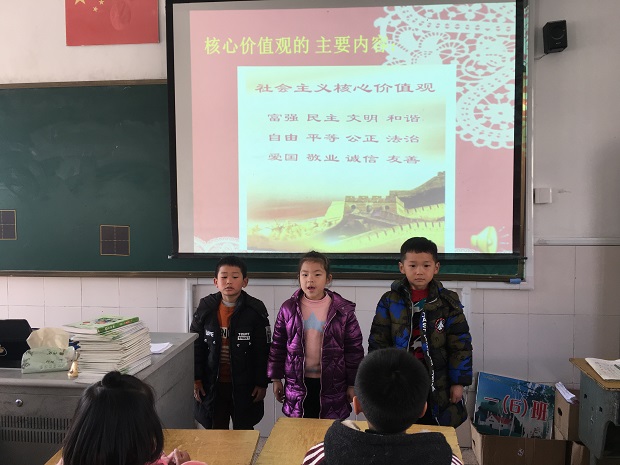 为学习贯彻习近平新时代中国特色社会主义思想,继续深化社会主义核心价值观宣传教育,2018年12月10日,百丈小学一年级新生开展第三次入队系列活动——践行社会主义核心价值观,争做新时代好儿童。 此次活动,各班级中队辅导员利用班会时间带孩子们对“24字社会主义核心价值观”的内容进行了再理解、再认识、再体会,激发了孩子们的民族自豪感和荣誉感。随后孩子们通过观看视频和图片、说一说身边好人好事,聊一聊中华传统美德,讲一讲榜样的故事等多种形式帮助大家加深对社会主义核心价值观的理解,将主题相关内容生动而具体地传递给了孩子们,从不同角度、不同层面,帮助孩子们理解、掌握并践行社会主义核心价值观。活动中,孩子们深刻理解了社会主义核心价值观的内容,再次认识到践行社会主义核心价值观的重要意义,并承诺从力所能及的小事做起并坚持践行下去。 本次主题教育活动充分宣扬了社会主义核心价值观,同学们都以高涨的热情和积极的态度参与,本次活动进一步深化了社会主义核心价值观主题教育的内容,也让每一个孩子明白要立志向、有梦想,爱学习、爱劳动、爱祖国,从小自觉培育和践行社会主义核心价值观。 (撰稿:栾颖颖 摄影:一年级各班班主任 审核:童晓霞)