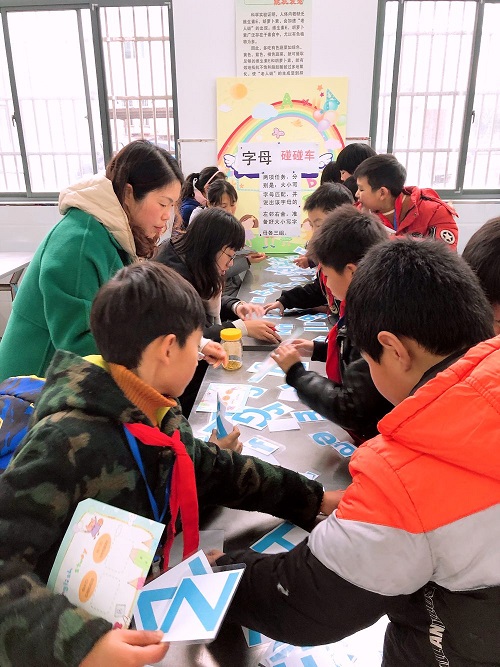 12月26号,百丈小学的三年级小娃娃们既兴奋又紧张。因为今天下午他们将在新食堂进行三年级字母过关测试,不同于以往的字母过关测试,今年英语组全体教师为孩子们准备了一场好玩又帅气的字母闯关活动! 第一篇章:出谋划策,为活动做足准备 在活动准备期间,英语组教师们聚在一起共同对本次活动的内容进行了探讨,制订了详实的活动方案。本次三年级字母过关测试包含三项内容:字母碰碰车、单词拼拼乐、句子连连看。紧接着在英语教研组长包利檬老师的带领下,打印三个环节的字母、单词及句子并做好相关的展板等,同时英语教师们与三年级的班主任们做好良好的协调,为活动的顺利开展奠定了基础。 第二篇章:尽心尽力,为孩子们的快乐 下午第一节课刚一结束,英语老师们个个带上印章早早地到达了新食堂。全英语组一共10位英语老师齐齐上阵,负责摄像和引导的陆燕老师在食堂门口为孩子们仔细引导,每一关的负责老师则认真倾听孩子们的回答并适当帮助。一节课需要完成两个到三个班级的字母过关,但是我们眼光所看到的是孩子们的有序、听到的是孩子们的欢笑、感受到的是活动给予孩子们的快乐! 第三篇章:多元活动,为今后英语学习 本次字母过关打破了班级的界限,以年级为单位进行联动,较好地培养三年级队员自主参与活动的能力。同时以游戏闯关的形式,激发队员的兴趣,考察队员字母、已学英语知识的学习情况并及时在三年级备课组进行反馈!实践证明,我们的活动是扎实有效的!孩子们的笑脸就是我们辛勤付出的回报! 愿本届三年级队员永葆学习英语的这份最初的动力与兴趣,在今后的英语学习上勇往直前! (摄影:陆燕 撰稿:陆燕 审核:包利檬)