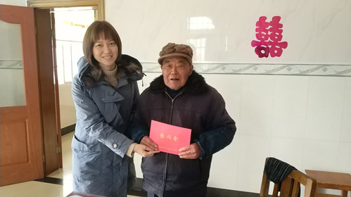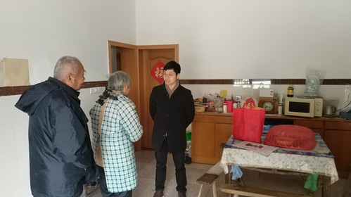 2月1日上午,在新北团区委书记张沁怡的带领下,团区委一行深入结对帮扶村、老复军人、“阳光扶贫”结对户困难家庭开展春节走访慰问“暖冬行动”,向他们致以亲切的问候和节日的祝福,并给慰问对象送去了慰问金和慰问品。