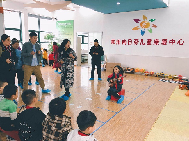 向日葵儿童康复中心负责人张云为参与活动的爱心人士介绍了关于自闭症的相关知识和机构情况。爱心人士还带上自己的孩子现场感受,与小朋友们玩在一起,最后还送上了精心准备的尤克里里弹唱曲目。