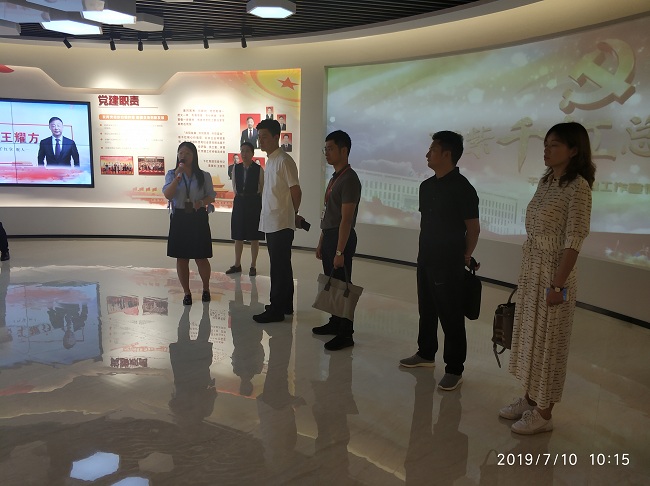 严书记一行首先调研了新北区非公企业团建示范点江苏紫龙药业有限公司,了解企业共青团工作的开展情况。随后,在常州千红生化制药股份有限公司,严书记一行参观了常州市非公有制企业党建工作展示中心和千红党建展示区,观看了相关党建工作宣传片。工作人员详细介绍了企业多年来坚持运用RED党建工作法的具体内容、做法和所取得的成效。