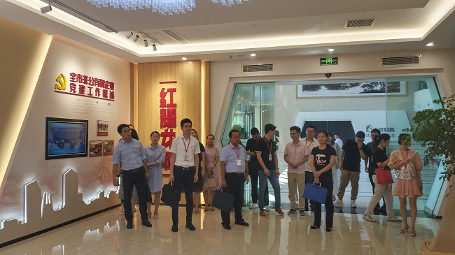 参会人员首先参观了龙虎塘街道智能传感小镇展厅,在展示大厅内,工作人员向大家展示了目前区域内智能的设计、前沿的技术、丰富的高科技产品以及人工智能产业,常州智能传感小镇目前也已经成功入选江苏首批特色小镇创建名单。随后,在常州市非公企业党建展示中心,大家观看了党建工作宣传片,了解了千红特色的RED党建工作法,感受了千红秉持“共同发展、共创繁荣”的党建幸福树。