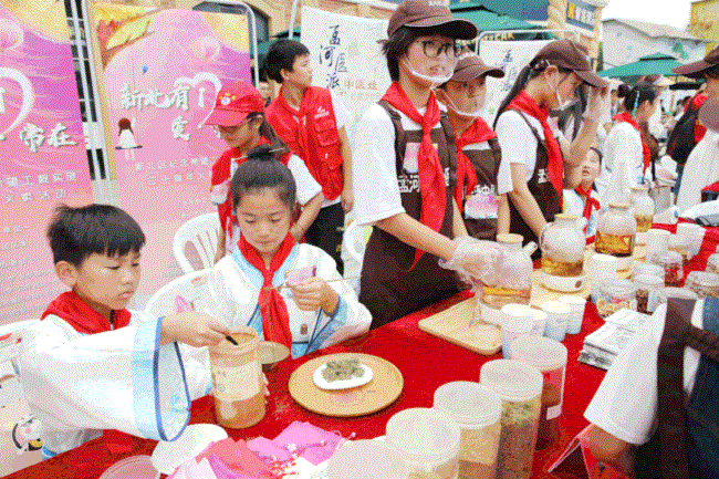 “孟河医派”中医娃传温暖 “这是艾草、这是蒲公英、这是葛蒲……”一个个声音稚嫩却坚定有力,来自孟河中心小学“孟河医派”红领巾中医社团的中医娃们拿出了“看家本领”,现场制作“孟河医派”香囊进行爱心义卖,用小小的香囊传递满满的爱。 义卖现场,队员们还娴熟地为老人们免费测量血压、为游客提供传统药茶品尝等,传递公益温暖,也以实际行动宣传和弘扬着“孟河医派”这一具有300年历史、江苏医家一大流派的中医文化和名医精神。