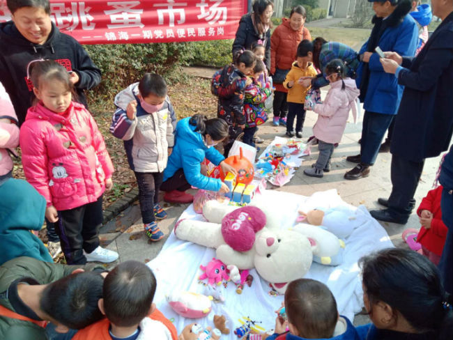 2019年1月1日,瑞雪过后迎新春,锦海团支部在锦海星城一期广场组织开展了“跳蚤市场”活动。活动面向社区30多个家庭,孩子们都积极参与活动。活动中,孩子们拿出自己心爱的物品,加入到出售清单中。一时间锦海一期广场上人声鼎沸,热闹非凡,叫卖声、欢笑声声声入耳。