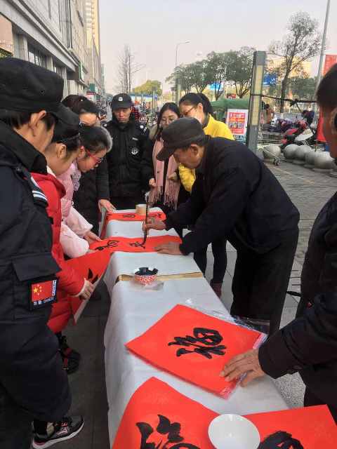 1月24日上午,新龙湖社区书画协会志愿者在新桥商业广场华润万家超市门口,举办了"迎新年、送春联"公益活动。活动现场,志愿者们丝毫不受寒冷天气影响,挥毫泼墨、潜心创作,在围观群众的称赞声中,一幅幅满载新春祝福的春联陆续呈现眼前,为居民送去温暖的节日祝福。此次活动,共向居民群众送出了百余幅春联,为即将到来的春节增添喜庆的氛围。