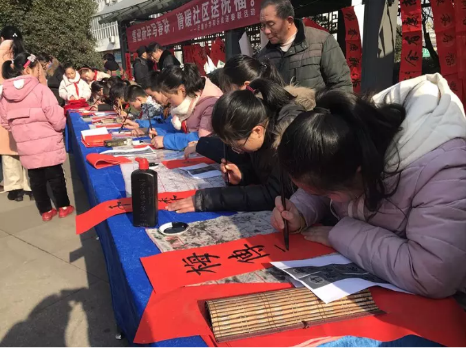 活动邀请到圩塘中心小学学生和中国书法家武进创作培训基地的老师们参与其中,现场书写春联。天气虽冷,可孩子们的热情不减,个个凝神专注,一笔一画,书写用心。书法老师们挥毫泼墨,用各自的书写风格挥洒出新春的祝福。不一会儿,一幅幅翰墨飘香的春联、一张张火红的福字,挂满了活动场地,墨香十足,年味浓浓。更多居民纷至沓来,围着、等待着孩子和老师们的佳作,“真厉害!”、“这个孩子写的真漂亮”、“哇,陈老师的这幅福字包含了5种字体呢”……叫好声、夸赞声不绝于耳。现场居民们拿着福字和春联,高兴不已,纷纷表示感谢。