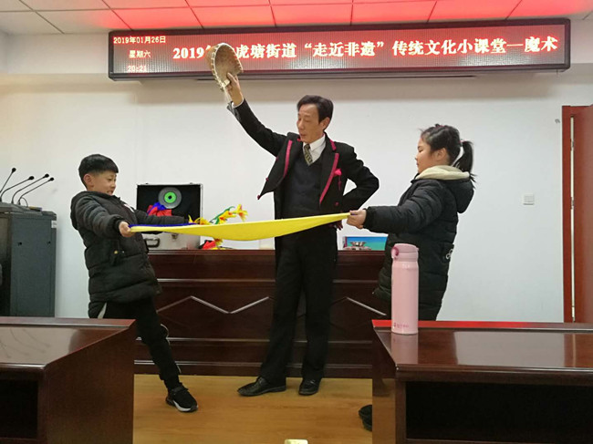 为了开阔广大青少年视野增长见闻,在游学中提升,感受魔术戏法传统文化的魅力,1月27日下午,龙虎塘街道开展了“走近非遗传统文化小课堂之魔术”寒假系列活动。 活动特邀常州市新北区民间杂技类非物质文化遗产传承人蔡秋华魔术师为现场近百名小朋友和家长表演了精彩纷呈的近景魔术。 “武松脱铐”、“白纸变钱”、“空手出彩”一个个魔术轮番上演……一伸手,水倒进纸杯神奇消失;一眨眼,被绳绑住的双手神奇脱困;一股风,断开的扇子神奇复原;一瞬间,剪断的绳子神奇恢复。有趣的氛围营造、夸张的语言、细腻的魔术表演,一下子吸引了孩子们的眼球。孩子们极有兴致地观察着、思考着、讨论着,透过现象作出了各种各样的推测,逐渐揭晓了神奇魔术背后的奥秘。 表演结束后,蔡秋华老师还现场破解魔术奥秘,现场教小朋友学变魔术,现场观众兴致极高。小朋友们一个个喊着“我也要学魔术”“魔术好有趣”……魔术作为一项传统文化,是非物质文化遗产,通过本次魔术课堂让非物质文化遗产传承下去,学会欣赏魔术艺术之美,从而让魔术艺术发扬光大!