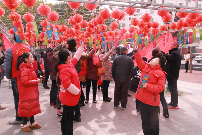 2月17日下午,河海街道团工委联合燕兴社区、文体站在燕兴小区举办“浓浓邻里情 欢乐闹元宵”暨“筑梦新时代 艺响新河海”庆祝新中国成立70周年文化艺术节庆元宵专场活动 活动现场分节目展演、非遗项目、传统技艺展示、猜灯谜、儿时记忆游戏体验、品元宵六个版块。 在欣赏了舞蹈、腰鼓、大头娃娃等精彩节目后,小朋友们纷纷来到灯谜区,两百余条灯谜挂在广场中央,小朋友们三五成群,认真琢磨、结伴猜谜,现场气氛活跃;跳绳、踢毽、夹弹珠、滚铁环这些儿时游戏更是触及了我们童年的记忆,深入人心,我们还为现场闯关成功的小朋友准备了丰厚的小奖品;常州豆炙饼、八宝菜粥、横山桥百叶、常州萝卜干等一系列和“吃”密不可分的非遗项目也在现场做展示展销;留青竹刻、烙画、虎头鞋、面塑、糖画、兔子灯、刻纸等传统技艺的展示,更让居民们大开眼界;最后压轴的品元宵环节中,我们的志愿者为现场两百多位排队等待的居民送上了一碗碗热腾腾的元宵。 此次河海街道元宵节活动吸引了六百余名居民的热情参与,增添了喜庆、祥和的节日氛围,让大家过了一个舒心、温暖的传统节日。
