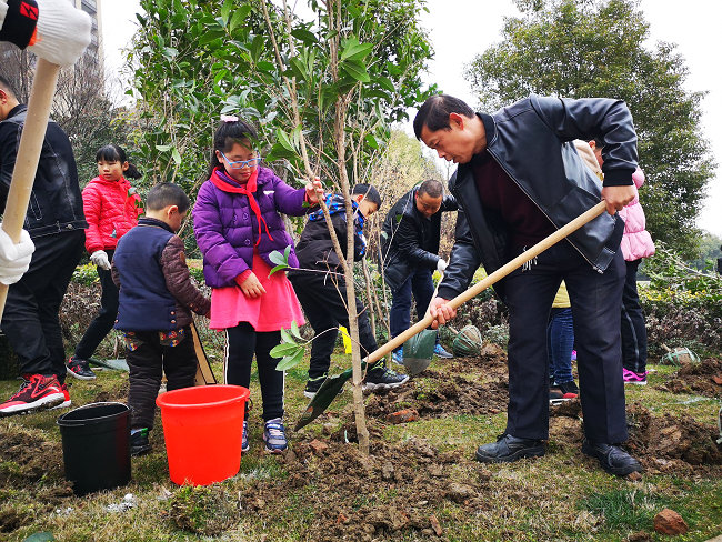 早春三月,草长莺飞。在第41个国家植树节即将到来之际,为提升青少年爱护植物、保护生态环境、营造绿色家园的意识,带动三井辖区内居民注重绿化、环保等问题。3月10日上午,由三井街道团工委、建管站主办,城管办、纪工委、泰山小学协办的“凝聚青春力量 助力绿色三井”主题的义务植树在华山公园拉开了活动序幕。 活动开始由三井街道建管站站长张培迪宣读绿色种树、倡导生态文明、做三井绿色践行者的倡议书,号召大家积极投身美化家园的活动中来,为魅力三井贡献青春力量。共有40余组家庭参加了本次义务植树活动。许多家庭全家动员,让孩子们亲手栽下小树,履行“种下一棵树,呵护地球”的神圣职责。孩子们在现场志愿者的指导下,与爸爸妈妈一起,挖坑、扶树、填土、浇水,并挂上自己的“护绿”宣言及“成长”寄语。 在活动的最后,三井街道党工委委员、纪工委书记白文君和城管办主任丁仁培一起为这片“三井青年林”揭牌,同时白书记表达了对三井青少年的祝福,期望三井的青少年朋友们能像这片新生的树林一样茁壮成长。 “十年树木,百年树人。”此次活动的开展,使三井广大青少年朋友们认识到绿化、环保的重要性,并感受到珍惜绿色生命、共建绿色家园的快乐,树立了爱护环境、保护绿色生态的良好意识。