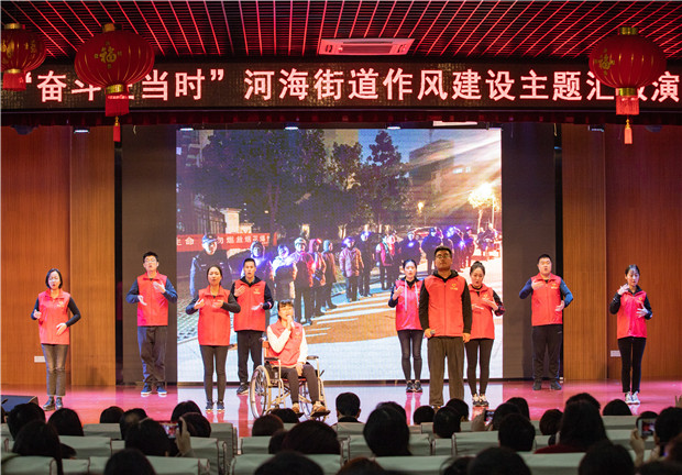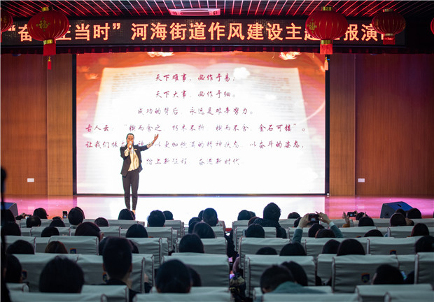 为进一步大力弘扬忠诚履职、奋发有为、比学赶超的良好氛围,激励街道青年职工勇于担当、争创一流的干事激情,3月30日上午,河海街道团工委在龙城小学召开了“奋斗正当时”主题活动。 在迸发着青春活力的搏击操开场后,正式拉开了帷幕,活动分为修德笃实、俊采星驰、砥砺名行三个篇章,坚定有力的快板《河海清风》,吹响了反腐倡廉的号角;一曲《春暖花开》描绘了大地万物复苏,花蕾含苞吐露的大好春光,提醒河海街道青年职工惜取好春光、奋斗正当时;朗诵《初心在方寸咫尺见匠心》展现出许许多多助力乐居河海稳步实现默默奉献的“匠人”的身影;流行打击乐《青春节拍》用节拍打出青春风采、用节拍唱出梦想、唱出爱、唱出精彩…… 河海街道“菁英学堂”的各班学员用他们青春矫健的姿态谱写一幅美好蓝图,激励河海街道青年职工新征程不忘初心,用浩然正气筑起一道纪律的铁壁铜墙,新时代牢记使命,用青春热忱演绎一篇为民服务的华章!